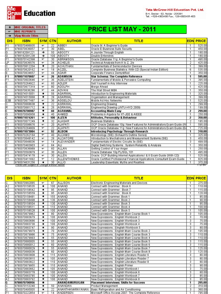 Tata Mcgraw Hill India Price List Engineering Technology Engineering